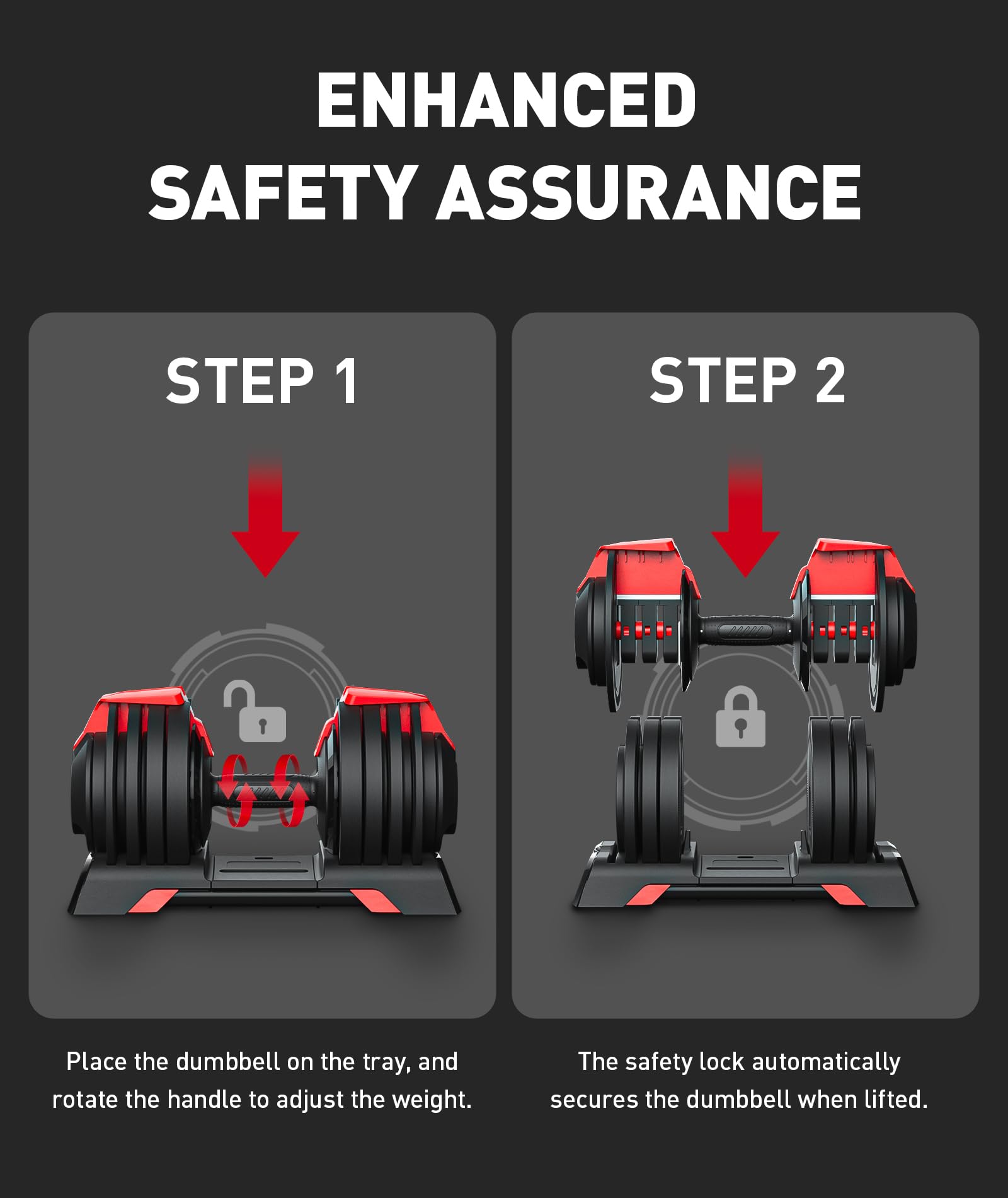 - 【SAFETY DESIGN】With its innovative countweight plate design, easily adjusts the weight by holding the handle and turning the pointer to the desired number. Our latest design includes 8 locking mechanisms, providing stability and ensuring your safety during workouts.
