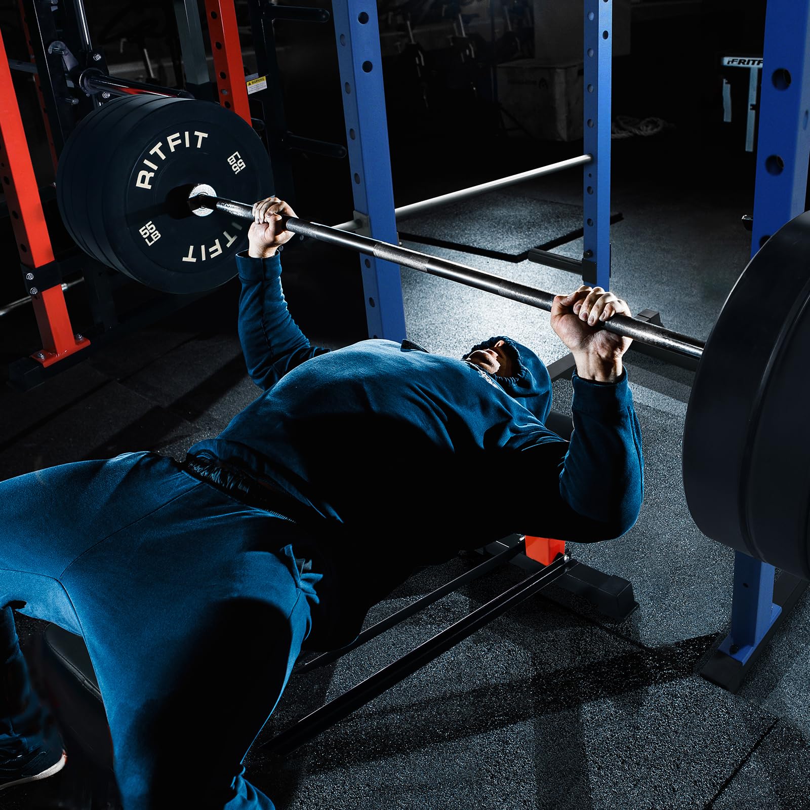RitFit PPC01 Power Cage, 1000LB Capacity Power Rack Full Home Gym for Weightlifting, Come with J-Cups, Plate Holders and Other Attachments (Basic Version)-Blue