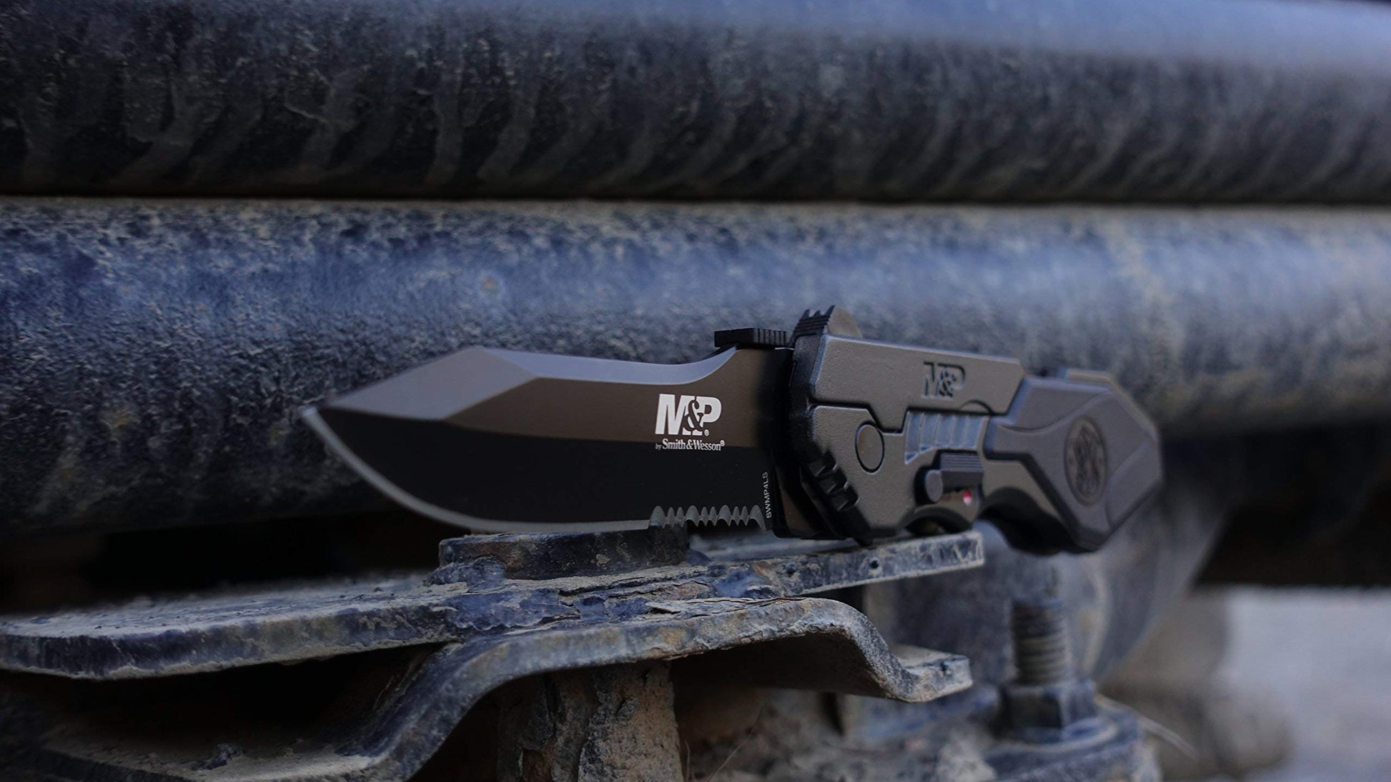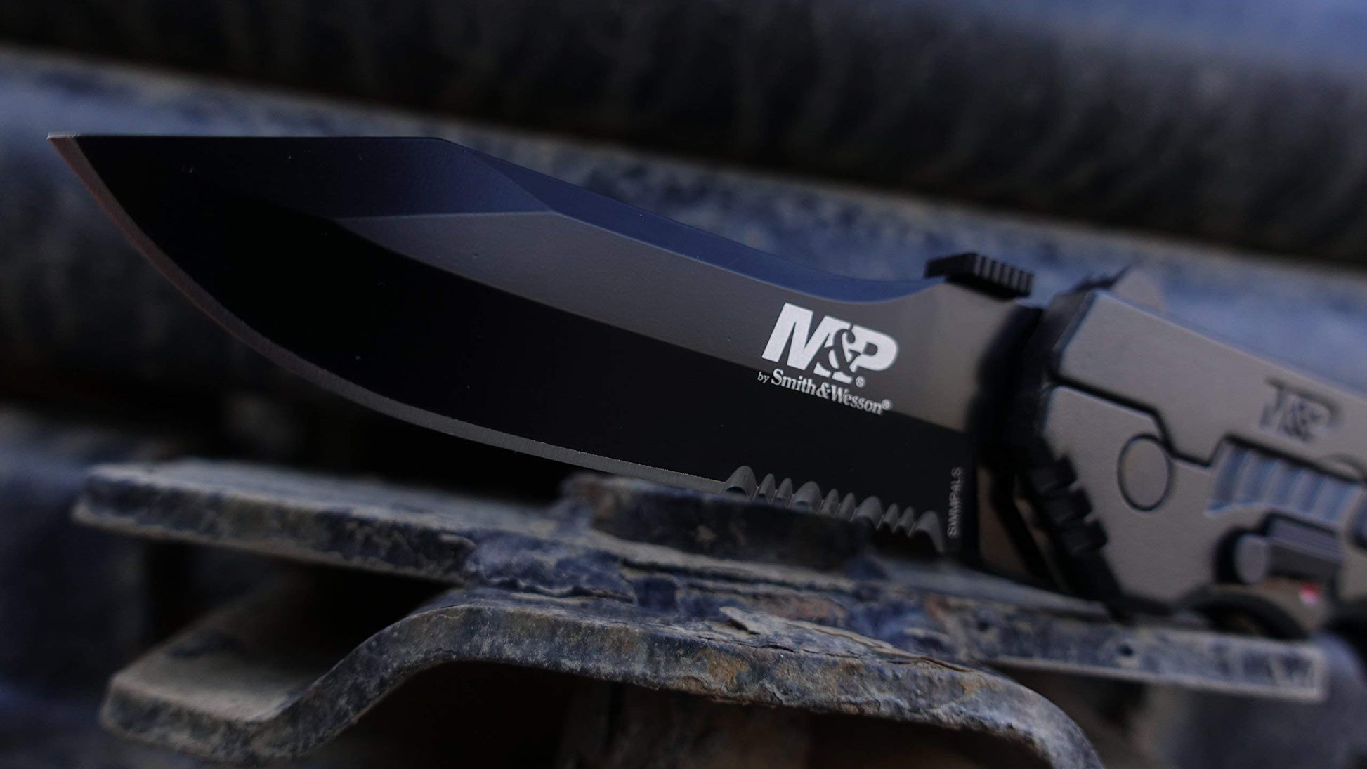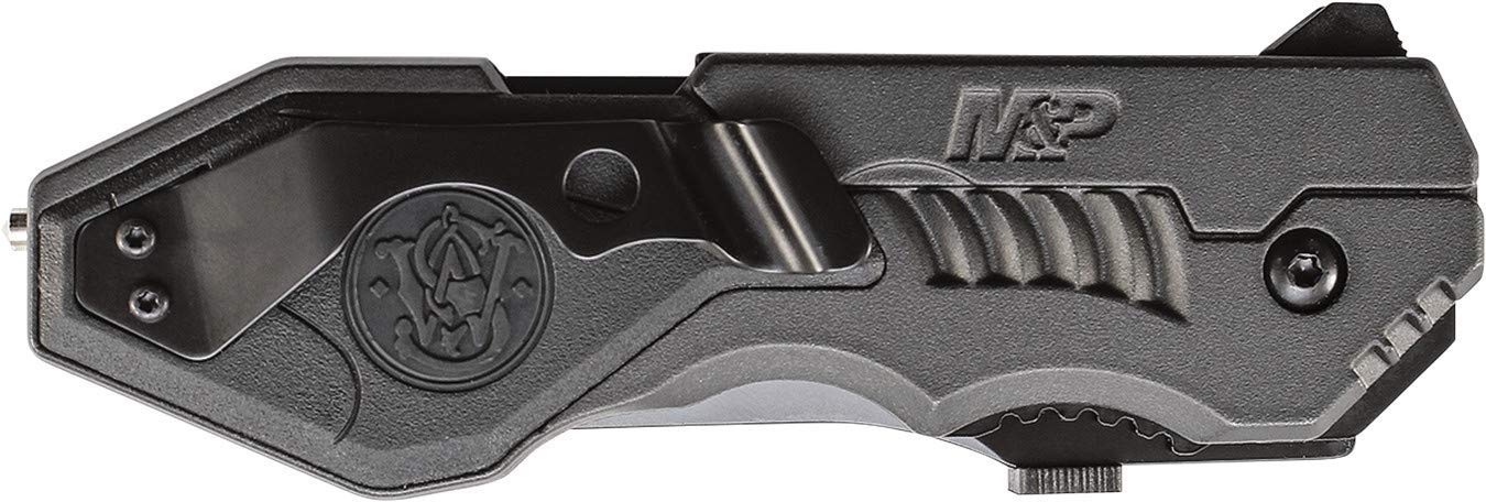 Smith & Wesson SWMP4LS 8.6in S.S. Assisted Folding Knife with 3.6in Serrated Clip Point Blade and Aluminum Handle for Outdoor Tactical Survival and EDC , Black