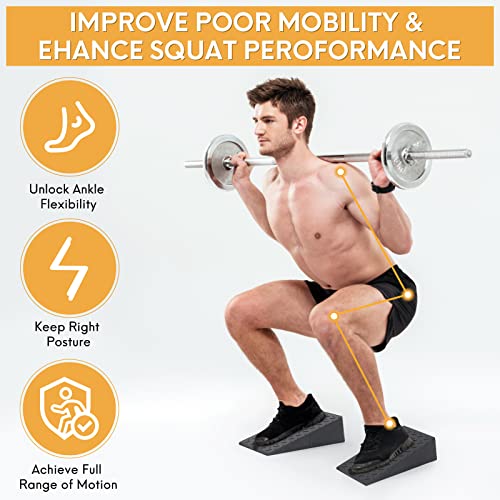 - 【Reduce Injuries with Squat Wedges】 With Heels Elevated You Will Find It Easy to Keep Balance And Stability When You Under Heavy Weight. The Squat Wedge Blocks Instantly Improve Poor Mobility of Your Ankles, Knees And Hips, Correct Your Form And Rely More on Your Back Chain Muscle Groups, Achieve Full Range of Motion, Reinforce Your Core Strength, Reduce Chance of Injuries That’s Why You Need These Squat Ramp.