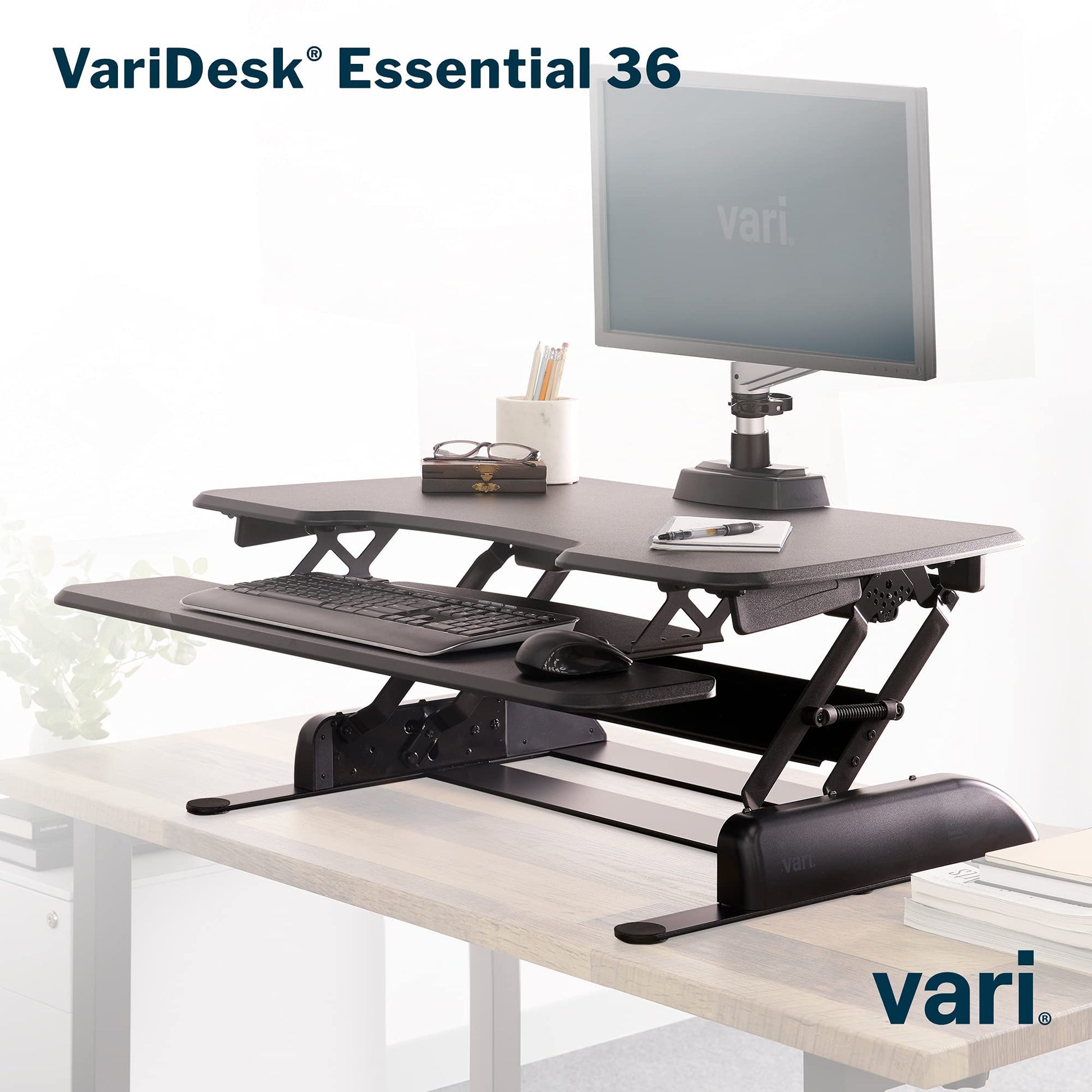 Vari - VariDesk Essential 36 - Two-Tier Standing Desk Converter for Monitor & Accessories - Height Adjustable Sit Stand Desk - Fully Assembled Monitor Riser for Home Office - 36" Wide, Black