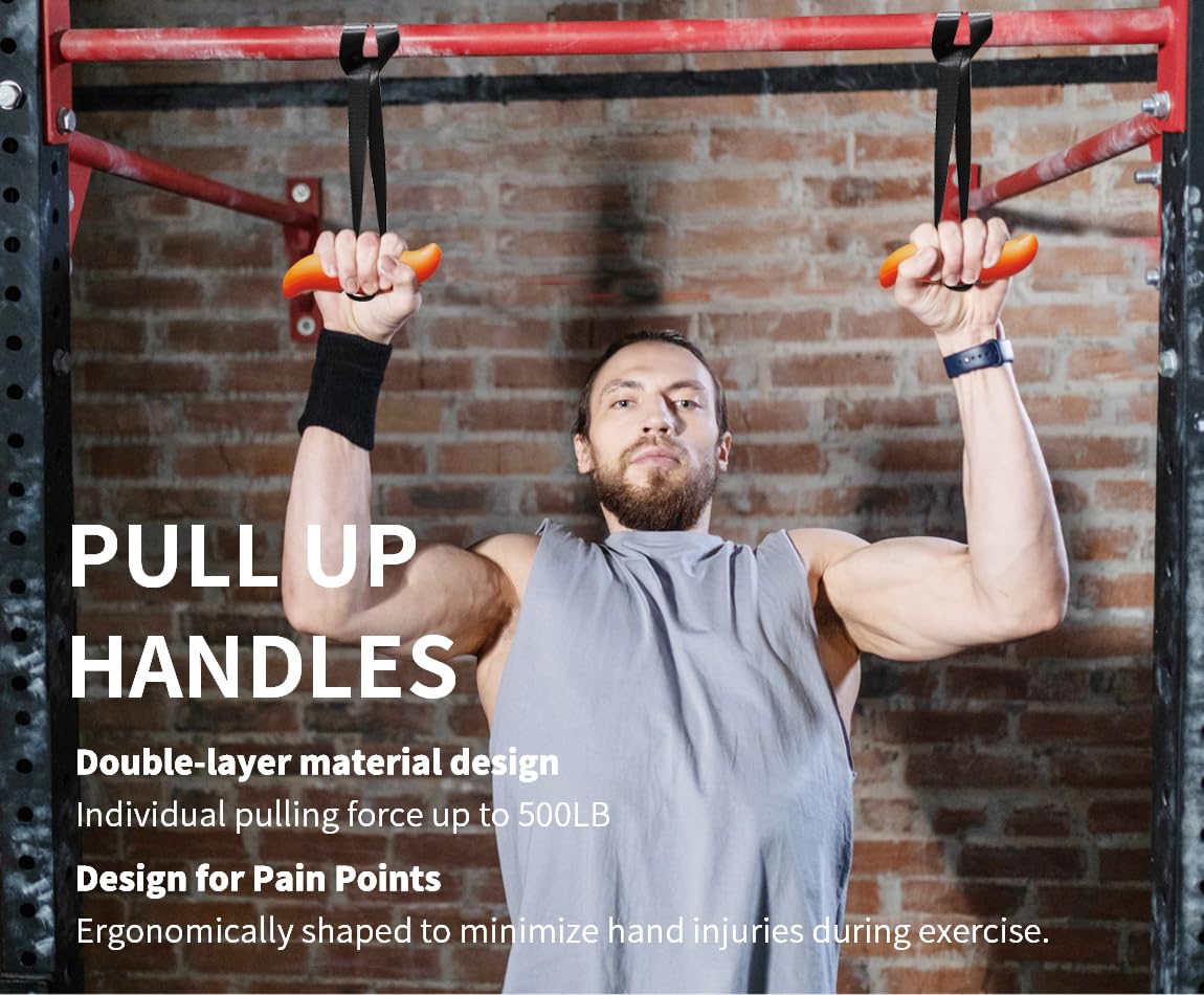 - [MORE DURABLE & COMFORTABLE MATERIALS] The pull up handles is made of secondary injection molding process. The inner part is made of high-strength industrial solid nylon material, which is especially strong and sturdy. The exterior is made of soft material to increase hand comfort and product volume, which is stronger and more durable than most similar grips on the market. Tested to pull weights up to 500 lbs.