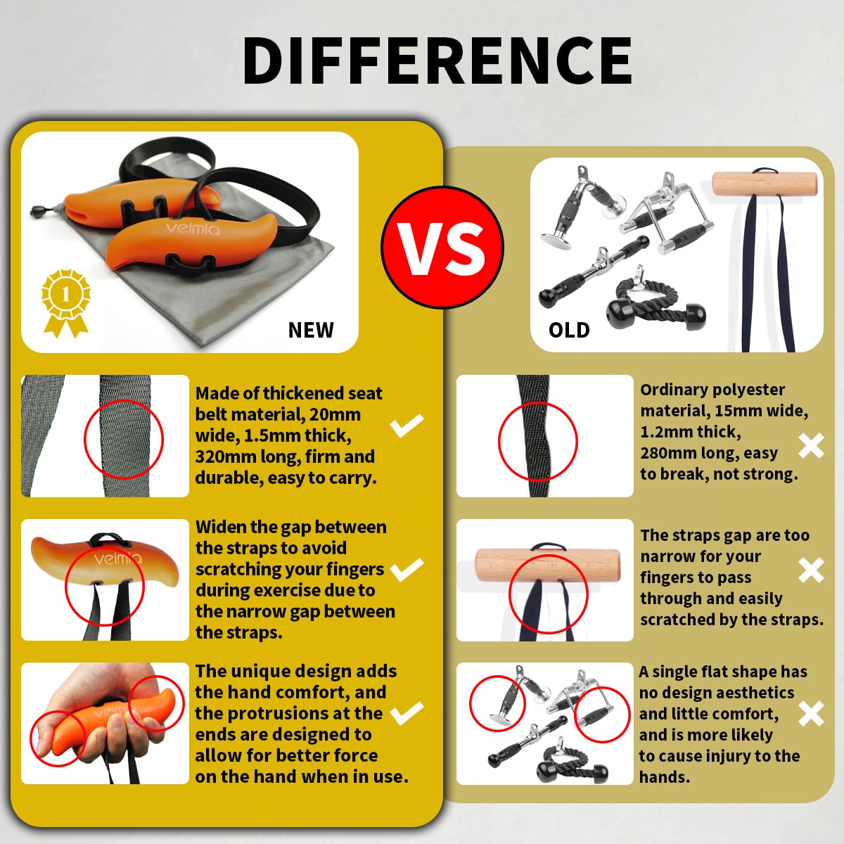 - [EASIER & SAFER GRIP METHOD] This resistance band handles provides a safer method for achieving good exercise in grip posture, with improved grip size and shape, making it easier for you to grip and avoiding hand injuries during exercise. No more wrist pain from repetitive lifts or deep squats. The more natural grip position reduces hand stress and friction injuries.